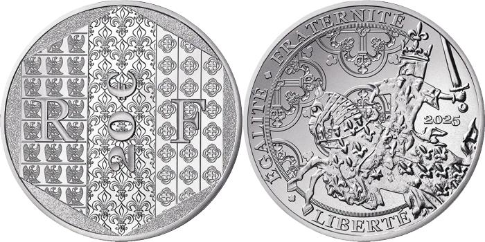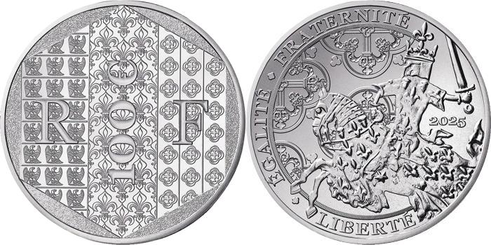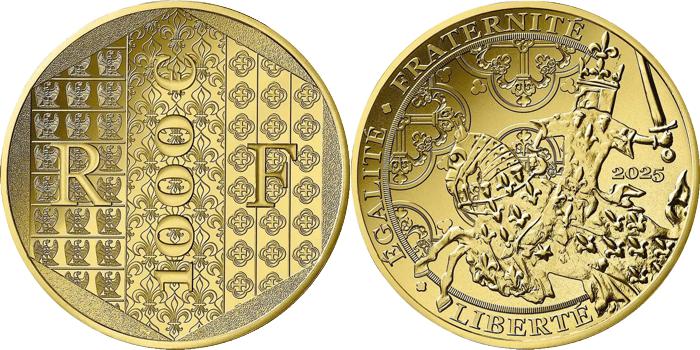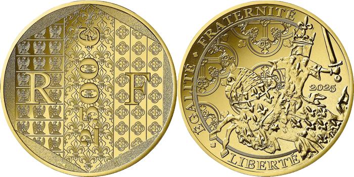 - Numismatique Française - Toutes ces monnaies ont été émises par la Monnaie de Paris et vendues, pour certaines, à un prix légèrement supérieur à leur valeur faciale. Elles ont cours normal uniquement sur le territoire français. 4- Les monnaies au type Ors de France - Année 2025 Réinterprétation de l’historique Franc à cheval, cette monnaie iconique reprend les traits de la monnaie en or émise dès décembre 1360 pour le roi Jean II dit le Bon. Présentant le monarque à cheval chargeant au combat, cette monnaie fut frappée pour célébrer la libération du souverain qui fut capturé par les Anglais lors de la guerre de cent ans, d’où son nom Franc qui signifie Libre.