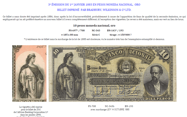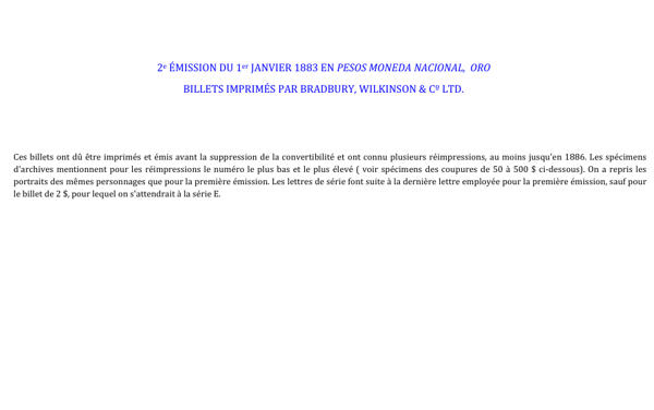 PDF partie 2 du chapitre 2 - 2e émission du 1 janvier 1883 en pesos moneda nacional, oro - Billets imprimés par Bradbury, Wilkinson & CO LTD