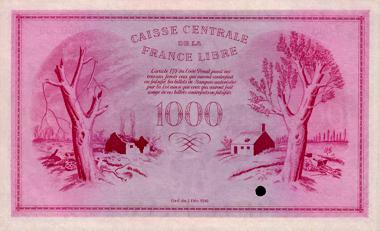 6 - Les billets de 1000 francs Territoires ralliés à la France Libre - France d'Outre-Mer Corse libérée