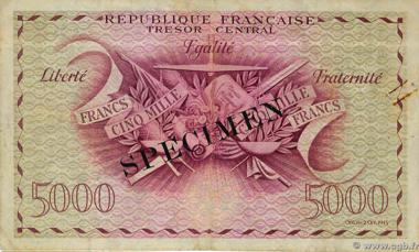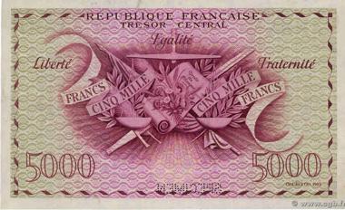 7 - Les billets de 5000 francs Territoires ralliés à la France Libre - France d'Outre-Mer Corse libérée